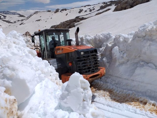 Karla kaplı Göktepe Yayla Yolu açılıyor