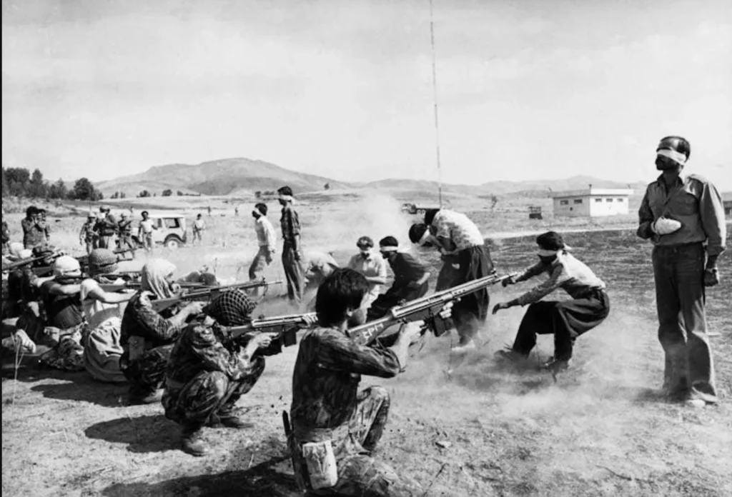 O an, Ettela’at gazetesinin fotoğrafçısı oradaydı. Deklanşöre bastığı saniye; tüfeklerden dumanın yükseldiği, mermilerin bedenlere ulaştığı ama kurbanların henüz yere düşmediği o dehşet anıydı. Fotoğraf, şiddetin tüm çıplaklığını ve “devrimci adaletin” soğuk yüzünü dünyaya haykırıyordu.